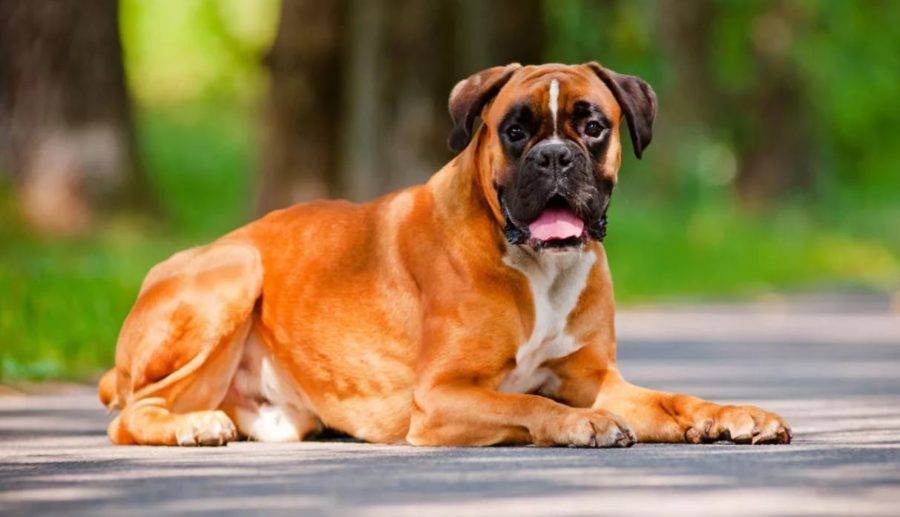 Боксер – гладкошерстный, крепкий питомец с квадратным туловищем и сухой мускулатурой. Рост – 63 см, вес – от 30 кг.