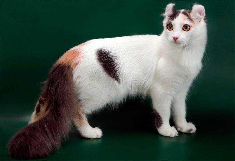 У американского керла допускается любой окрас. Хоть полосатый, хоть черный, хоть пятнистый. Все дело в том, что во время селекционной работы над породой использовали обычных домашних кошек.