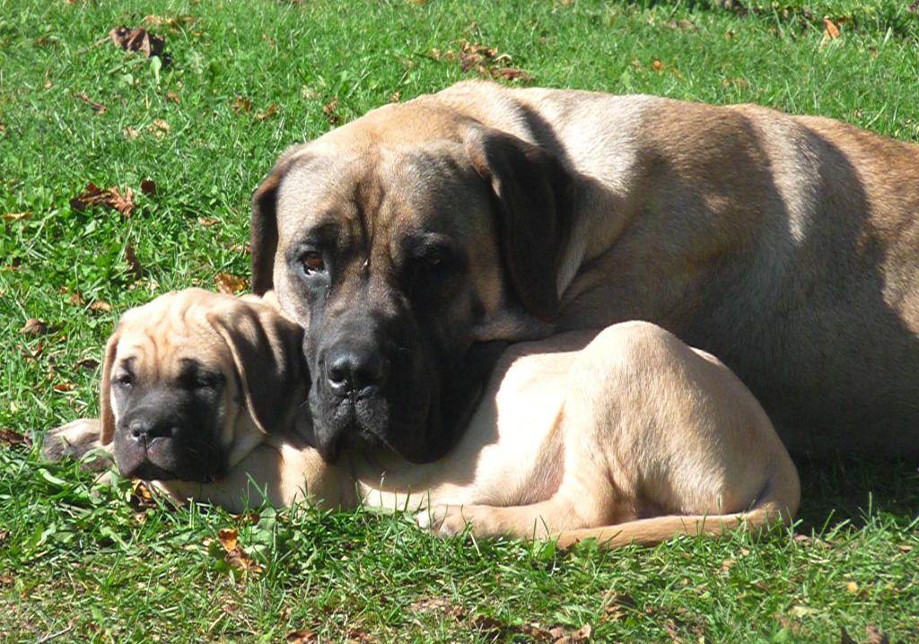С другими собаками, особенно однопородниками, мастифы ладят хорошо. Конфликты иногда возникают между кобелями, но их легко пресечь.
