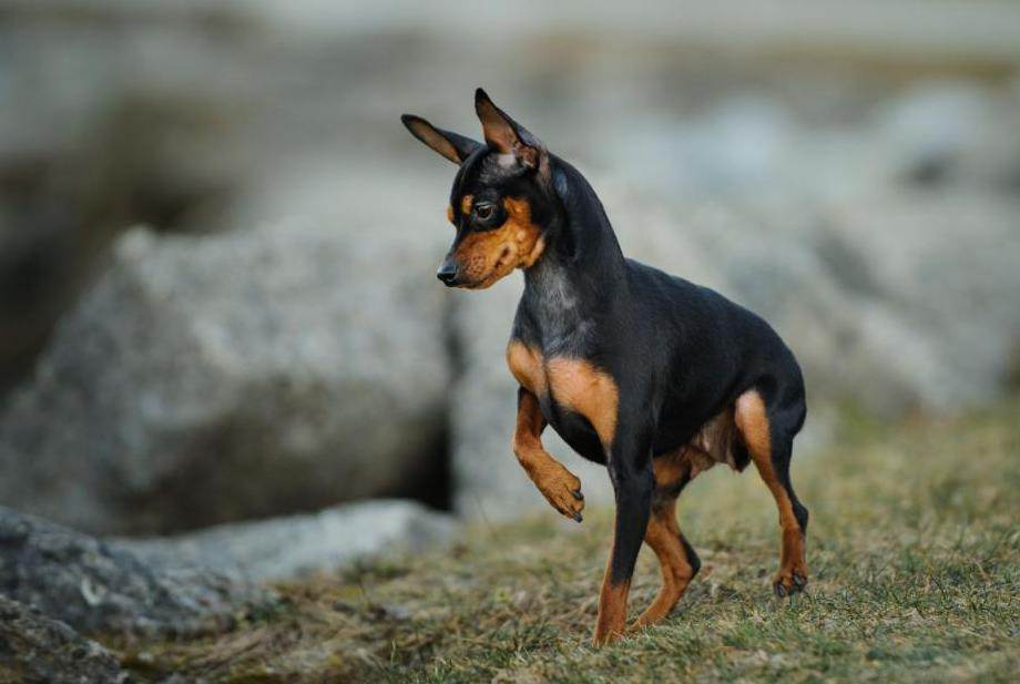 Рост животного из Англии составляет 25–30 см, вес – 2,7–3,6 кг. Внешне оно напоминает миниатюрного добермана – похожий окрас, узкая морда, вытянутый череп и стоячие крупные уши. Глаза небольшие, миндалевидные, темные. Тело гармонично сложенное, с развитой мускулатурой. Хвост имеет среднюю длину, посажен низко, сужен к концу. Конечности компактные, мускулистые.