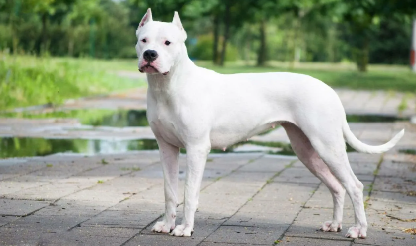 Аргентинский дог – крупная мускулистая собака, отличающаяся пропорциональным телосложением с рельефными мышцами. Белая шерсть короткая, длина волоса не более 2 см. В вольере не выживет. Подшерстка у него нет. О породе впервые заговорили в 1928 году, выведена в Аргентине. Изначально использовалась как охотничья. Рост зависит от пола от 60 до 68 см в холке, вес средний от 40 до 45 кг. Характер добродушный и ласковый к хозяину и членам его семьи. Стоит помнить о его редком упрямстве и склонности к доминированию. Неопытным собаководам порода не подойдет. Может быть только единственным питомцем. Требует очень серьезного воспитания и дрессировки. Запрещена в некоторых странах.