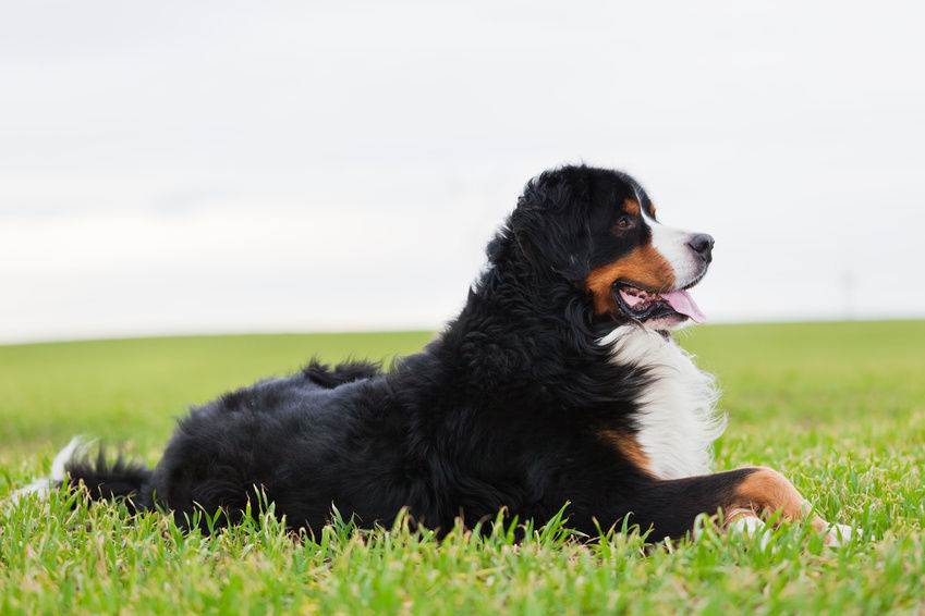 Бернский зенненхунд, которого еще ласково называют Бернер, легко узнаваем из-за роскошной триколорной шерсти и белой отметены в виде креста на груди