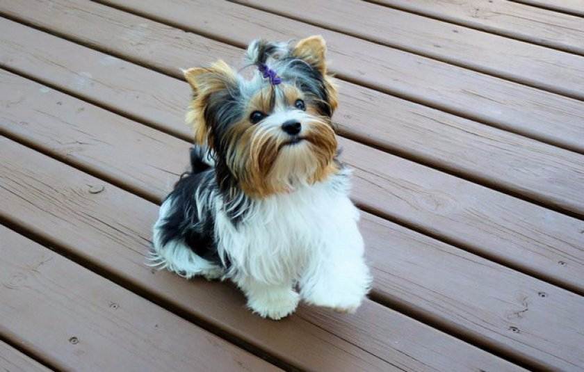 - Биро. Разновидность породы получена в 2004 году, когда в помете бивер-йорков обнаружился необычный кутенок. Окрас трехцветный – коричнево-бело-палевый.