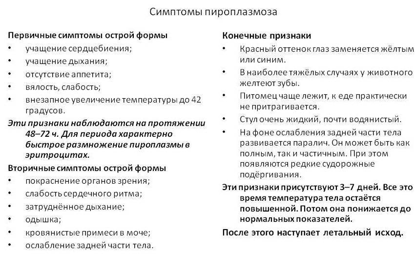 При внедрении и активном размножении бабезий наблюдается сильная воспалительная реакция, повышается температура, собака становится вялой, апатичной. Хорошо, если заводчик свяжет появления симптомов недомогания с укусом клеща и вовремя доставит собаку в ветеринарную клинику.