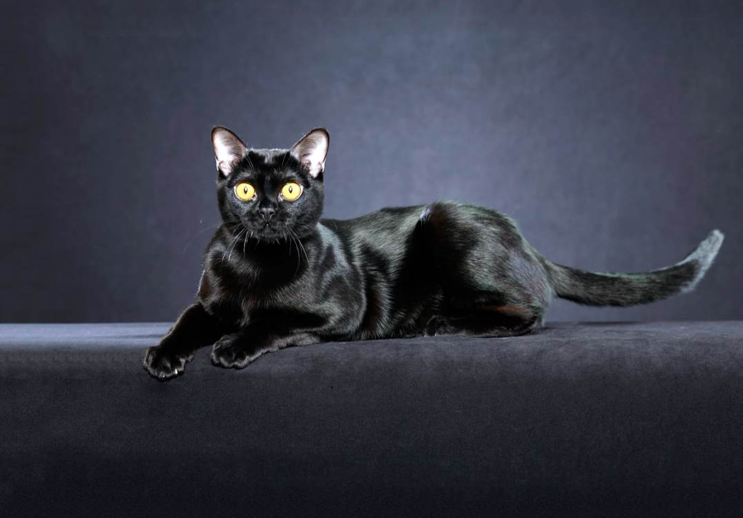 Бомбейская кошка внешне напоминает миниатюрную пантеру. Этот ласковый и активный питомец ломает все стереотипы о черных котах, ведь приносит в дом только счастье и радость.