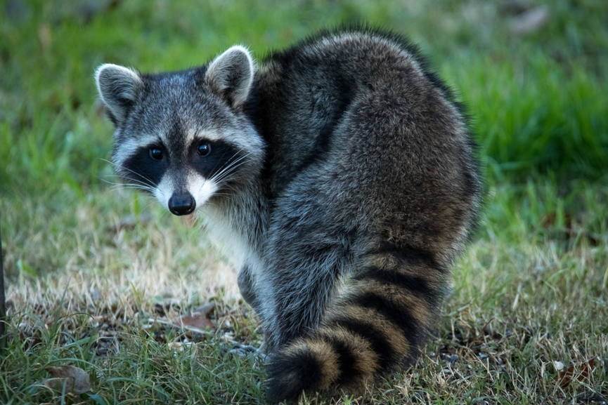 - еноты имеют пушистый длинный хвост с чередующимися светлыми и темными поперечными полосами;