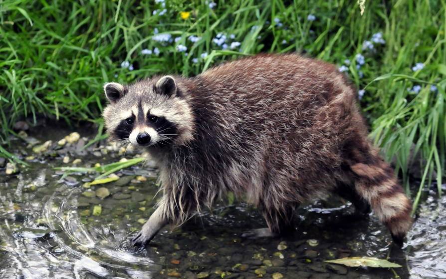 Лапки енота – основной инструмент в охоте. Они позволяют зверьку быстро спрятаться от более крупных хищников, ловко забраться на высокое дерево, повиснуть на одной «руке». Его отточенным движениям позавидует любой акробат. Если полоскун не успевает укрыться от угрозы, он может сымитировать смерть. Живут еноты около пяти лет.