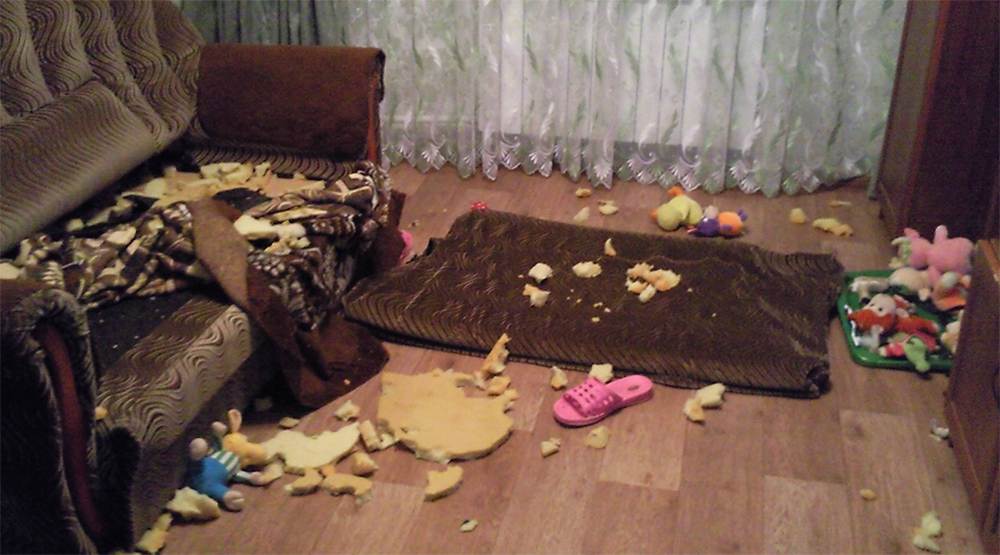 Неусыпно контролировать поведение собаки практически невозможно. Так или иначе, щенок имеет возможность погрызть мебель дома в отсутствие хозяев.