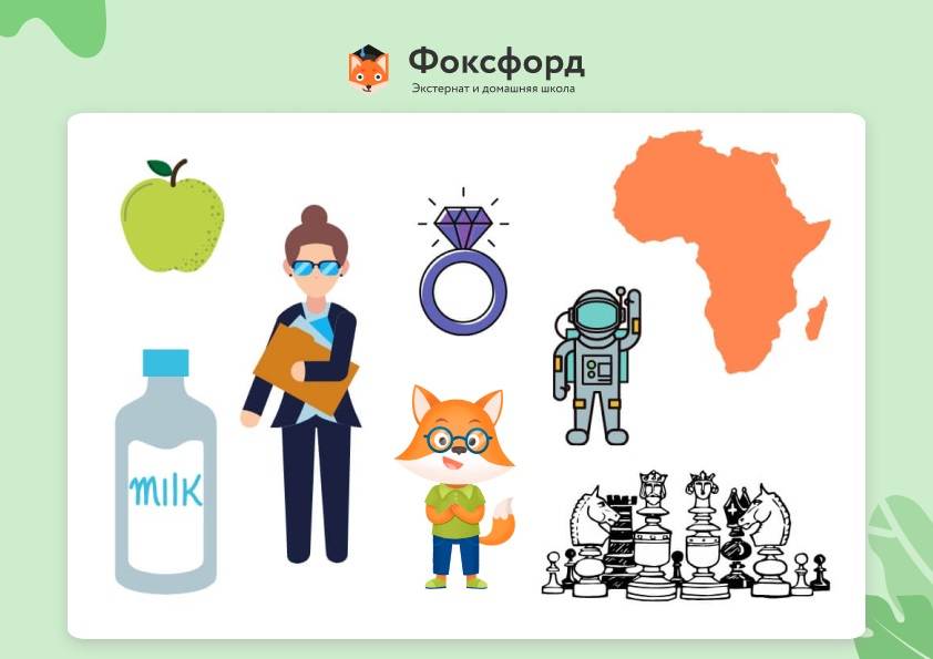 Упражнение 3. Запомните цепочкой слова: лиса, космонавт, кольцо, яблоко, шахматы, учитель, Африка, молоко.