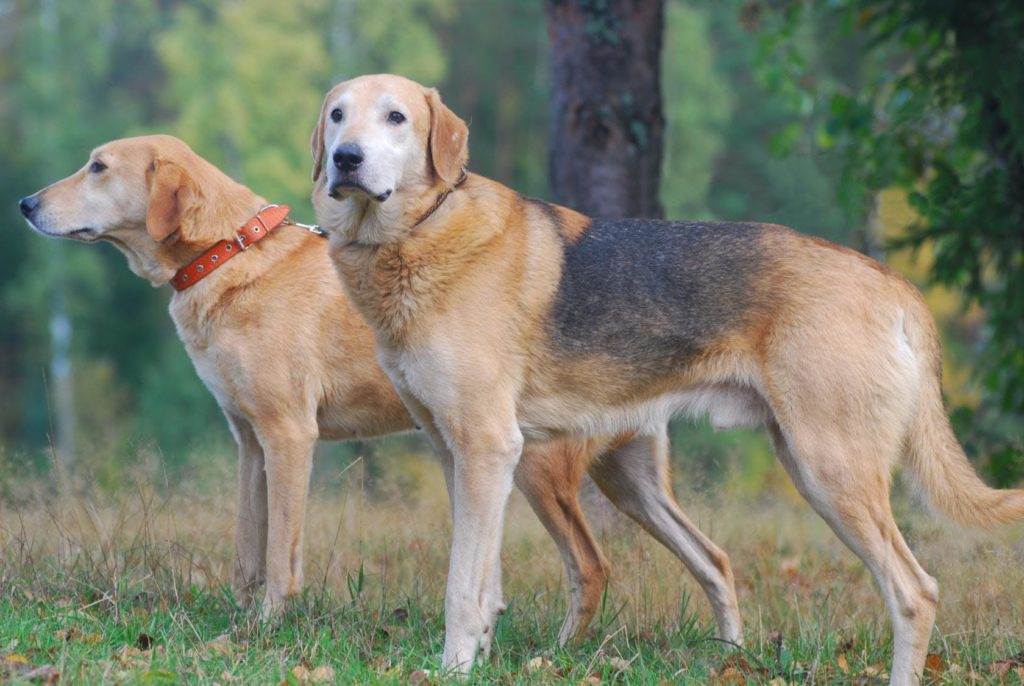 Одна из самых древних пород, которая использовалась столетия для охоты на лосей. Есть две разновидности породы: чёрные и серые. Их отличия заключаются в окрасе. В остальном это мощные и крепкие животные, достигающие в холке 47 – 52 см, а по весу растущие до 25 кг. Могут быть использованы как пастушьи собаки.