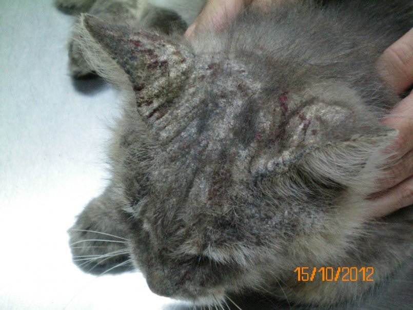 Если это повреждена часть головы, именно на голове расположены узелки скорее всего животное пострадало от таких вредителей, как клещи. Наиболее точный диагноз можно установить после того, как ветврачи полностью обследуют кошку.