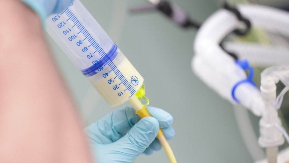 Энтеральное питание. Оно осуществляется с помощью специальных питательных смесей. Их отличительная особенность заключается в том, что даже в малом количестве пищи содержится высокая концентрация питательных веществ, а также необходимых макро- и микроэлементов. Подается такое питание через зонд напрямую в желудок или тонкую кишку. Он устанавливается через нос или стому – специальное хирургическое отверстие в животе, которое позволяет доставить смесь напрямую в нужный орган, минуя пищевод.