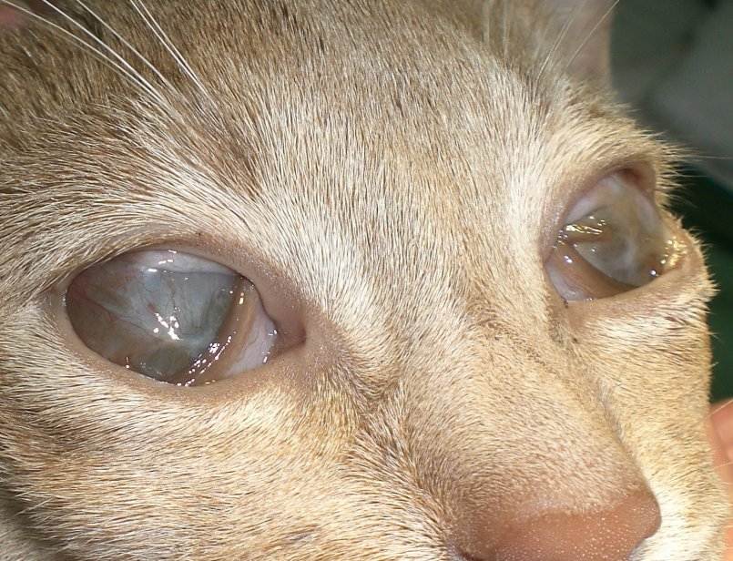 Ринотрахеит у кошек сопровождается глазной инфекцией, выделения из глаз содержат гной или густую слизь. Пожелтевшие склеры свидетельствуют о заболевании печени. Полузакрытое третье веко может говорить о заражении глистами. Зрачки разного размера – признак неврологических проблем.