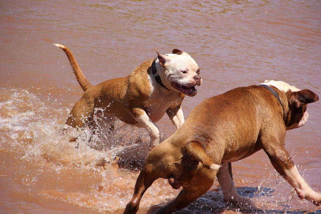 Они могут воспринимать их как добычу. К посторонним собакам американские бульдоги относятся тоже неприязненно, особенно кобели. Они не потерпят нападки и агрессивное поведение со стороны потенциального соперника. А если началась драка, амбуля почти невозможно остановить. Поэтому намордник и поводок должны стать обязательными аксессуарами для прогулок в городе. Сгладить проявления зооагрессии поможет ранняя и тщательная социализация щенка. Если в детском возрасте он много общался с разными животными, он не будет видеть в них врагов. Хотя свою территорию станет охранять в любом случае.