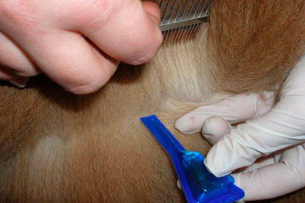 - Проверить, нет ли у животного заметных расчёсанных участков кожи, открытых ран, других повреждений, поскольку такие места нельзя обрабатывать лекарством. Если шерсть не повреждена, приступают к процедуре обработки.