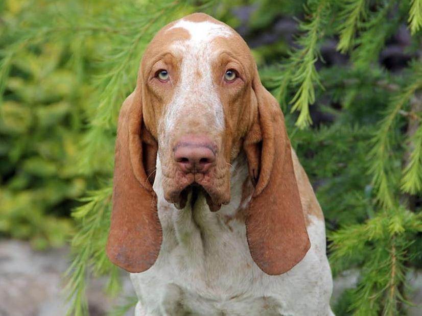 - Уши – длинные висячие, повёрнутые внутрь, ширина равна половине длины. По стандарту породы уши должны свободно доставать до кончика носа.