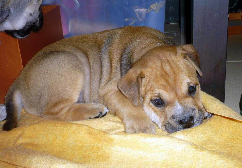 - 1 месяц. В этом возрасте щенки мастифа выглядят широкомордыми, крепкими и достаточно упитанными. Им уже присущ типичный для представителей данной породы взгляд и несколько насупленное выражение морды. Шерсть ещё довольно короткая, но уже плотная и густая. Рост малышей составляет 32-28 см, а вес от 3 до 4 кг.