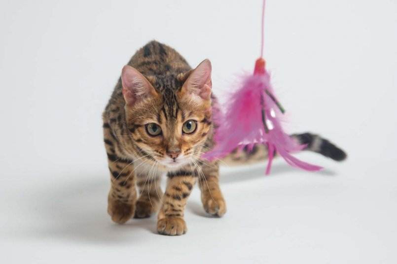 Могут пригодиться мячики, бантики на веревочке, обруч (диаметром не более 35 сантиметров), лазерная указка, емкость для поощрительного лакомства, моток шерстяных ниток (которые животное не сможет отгрызть и проглотить).