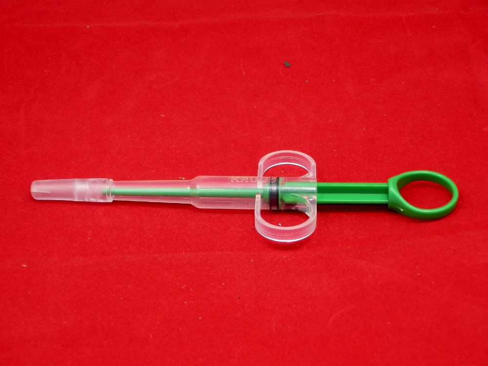 Специальное приспособление таблеткодаватель, значительно облегчает процесс дачи таблеток животному. Внешний вид напоминает обычный шприц, но вместо иголки удлиненная мягкая трубочка. Принцип действий следующий: