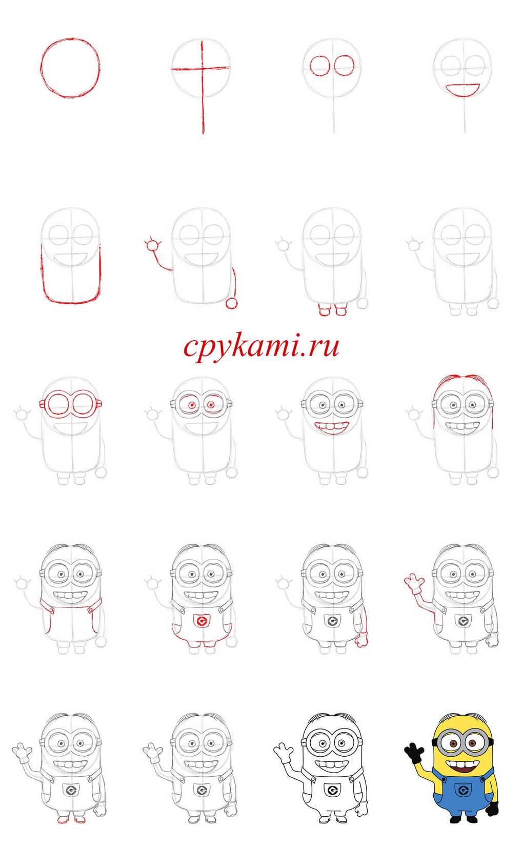 Нарисуйте глазки-кружочки и примерную форму хвоста.