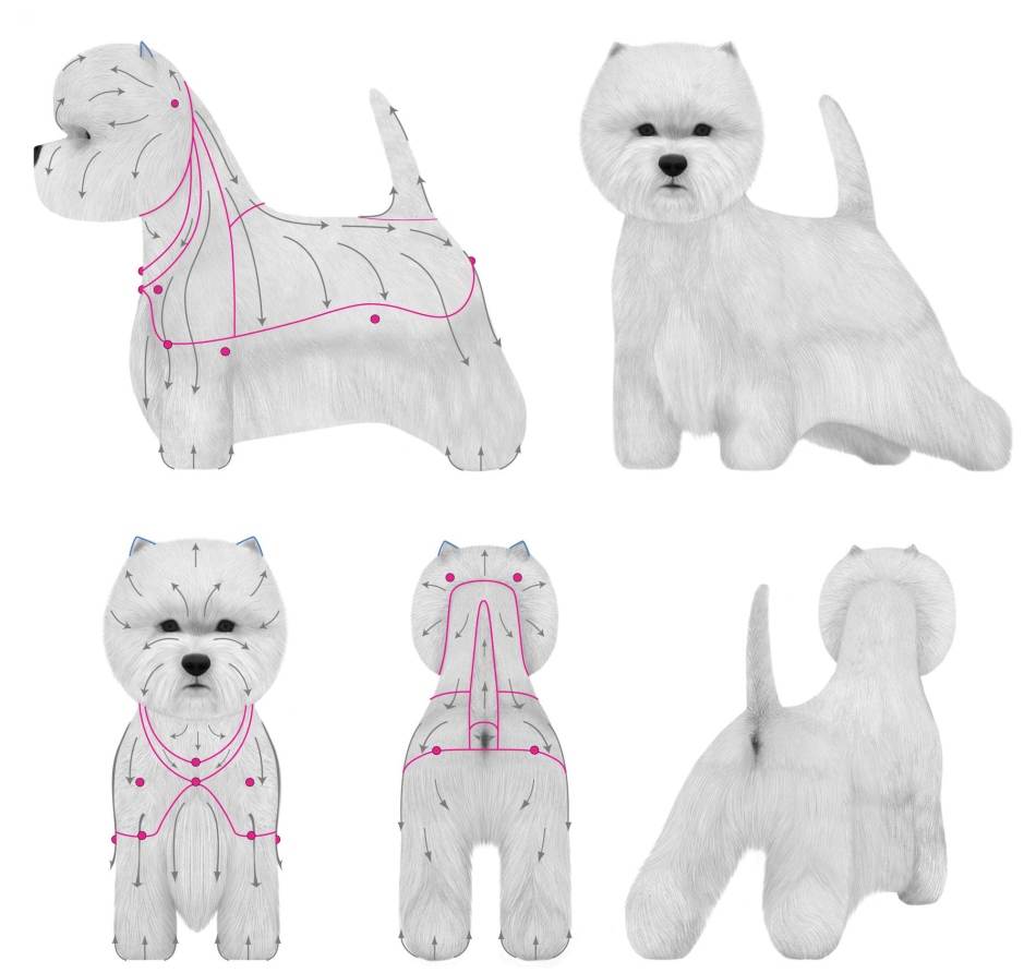 Прежде чем начать процедуру, надо определить, на каких участках тела собаки требуется оставить более длинную или густую шерсть