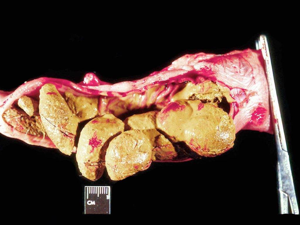 - Задержка дефекации вызвана проглатыванием предметов или костей.