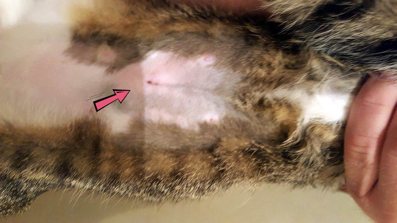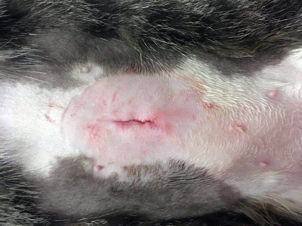 Так выглядит косметический шов после стерилизации кошки. Все ниточки внутри.