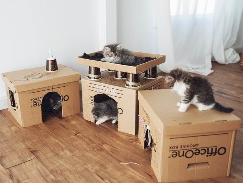 Домики для кошек из картона