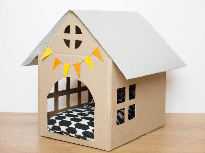 4Жилище из многослойного картона обязательно придется животному по душе. Ведь прочное основание получится достаточно теплым, а стены идеально защищенными от сквозняков.