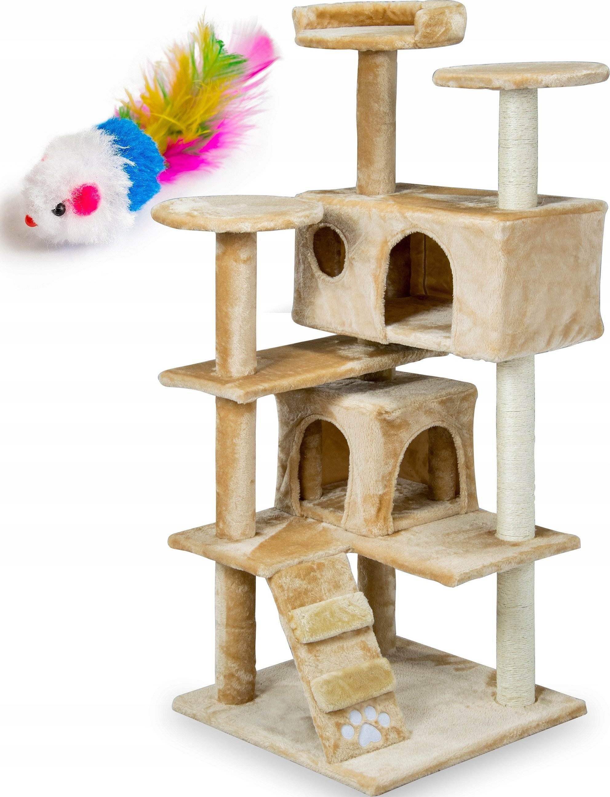 - Закрепите на домике кошачьи аксессуары: подвесную игрушку, мышку на пружине, ковролин для когтей и т. д.