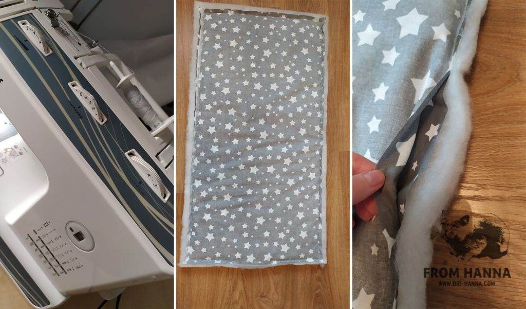 Далее необходимо прострочить ткань на машинке и набить полученные бортики синтепоном. На свое усмотрение можно использовать другой наполнитель. Не рекомендуется набивать изделие слишком плотно, так как оно должно быть слегка воздушным.