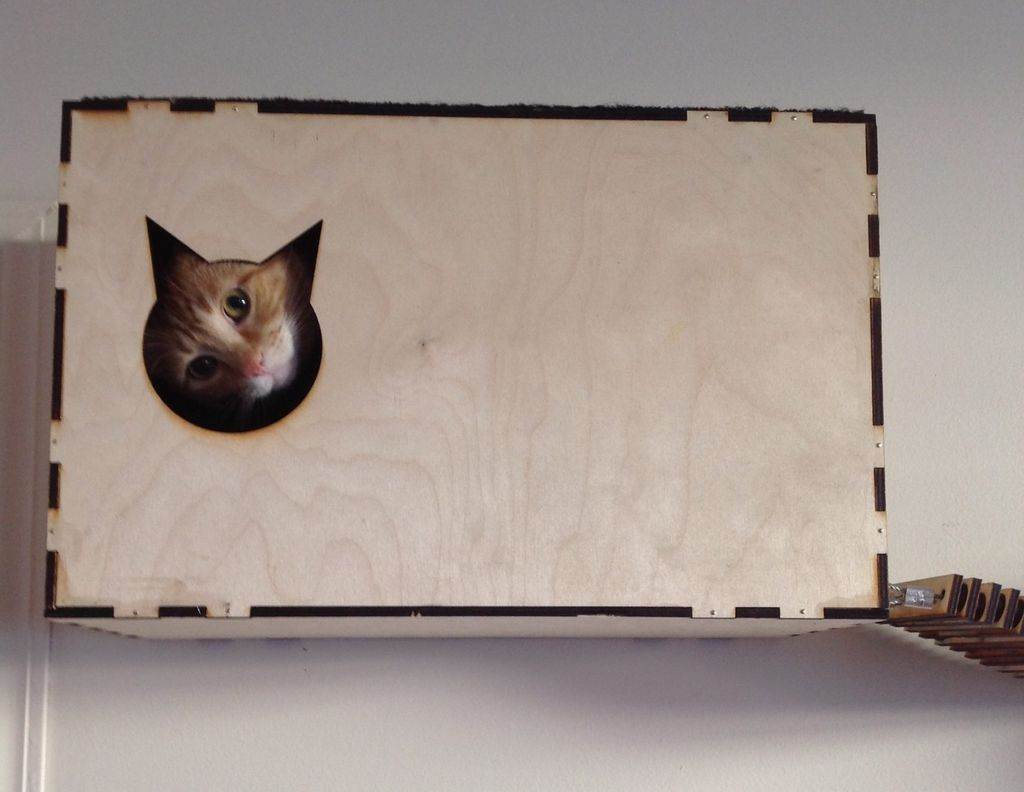 Для кошки же лучше сделать двухуровневую конструкцию, где верхний уровень поможет высматривать врага, а нижний мать только что выведенного потомства использует для засады, и в случае приближения опасности будет нападать на будущего обидчика.