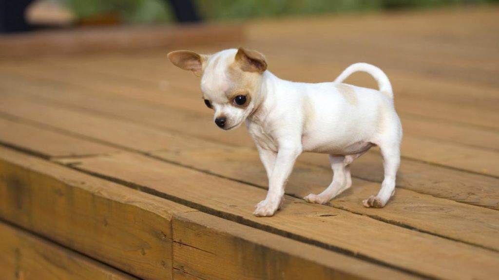 Чихуахуа. Эта порода тоже некрупная, ещё мельче, чем шпиц. Вес животного можетварьироваться от пятисот граммов до трёх килограмм, а высота в холке достигать двадцати сантиметров. Выглядит такая собака очень хрупкой и утончённой, несмотря на достаточно крепкое телосложение. Голова средних размеров. Мордочка вытянутая, но не заострённая. Уши большие, стоячие, треугольной формы. Шерсть может быть как совсем короткой, так и длинной. Окрасы бывают самые разные.