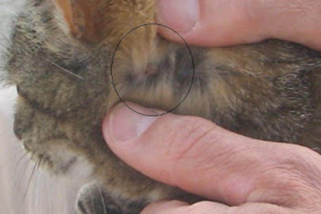Если клещ будет частично удален животным, а укус при этом не обнаруживается, то вскоре на данном участке ткани воспалятся. Появится боль, отек. Животное может отказываться от пищи, появляется слабость в теле, кот неактивен. Повышается температура. При осмотре виден фрагмент тела паразита под кожей у животного.