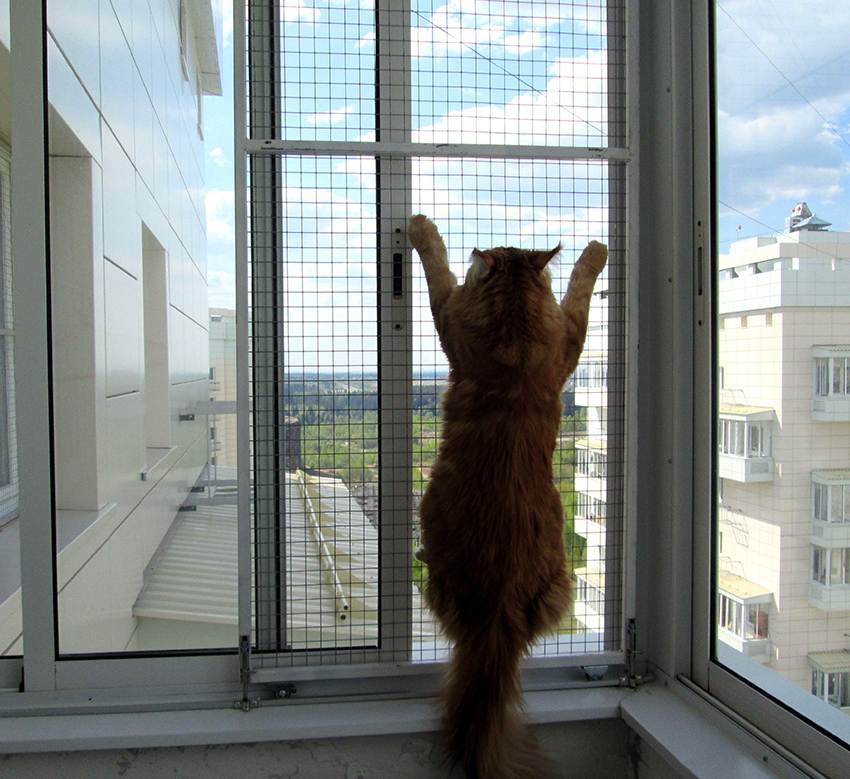 Не следует думать, что антимоскитные сетки, входящие в комплект пластиковых окон, способны эффективно противостоять напору животного. При нажатии они относительно легко снимаются. Чтобы предотвратить выпадение кошки из окна, потребуется специальная сетка «антикошка».