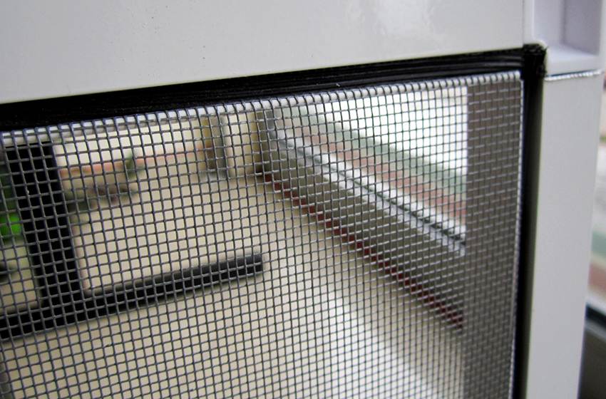 Мелкоячеистое полотно изготавливают из тонкой стальной проволоки путем перекрестного плетения. Его надежное крепление на алюминиевом каркасе обеспечивают металлические уголки. Фиксируют конструкцию по периметру рамы.