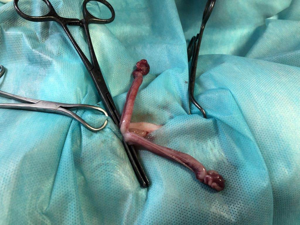- Новообразования в полости матки, придатков или же просвета половых путей. Оперативное вмешательство – овариогистероэктомия (удаление матки с яичниками), проводиться с целью сохранения жизни животного.