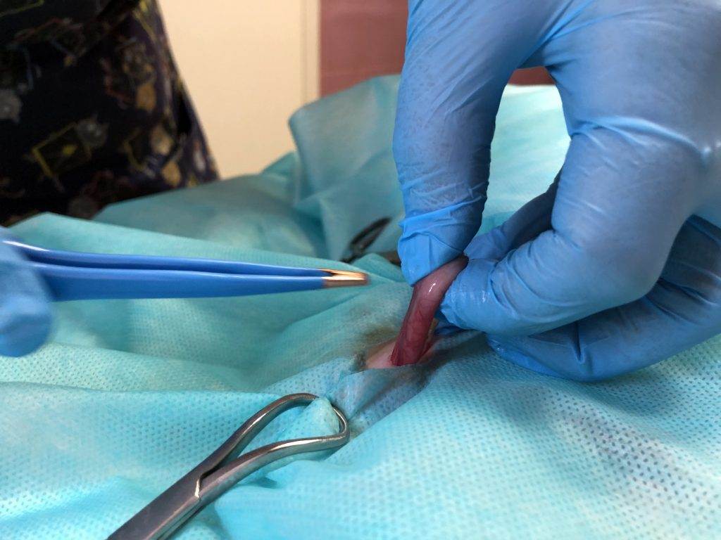 - Обязательно ветеринар должен осмотреть культю, которой станут половые органы кошки, на предмет кровотечений. Если проводится классическая, полостная стерилизация, такой возможности нет.