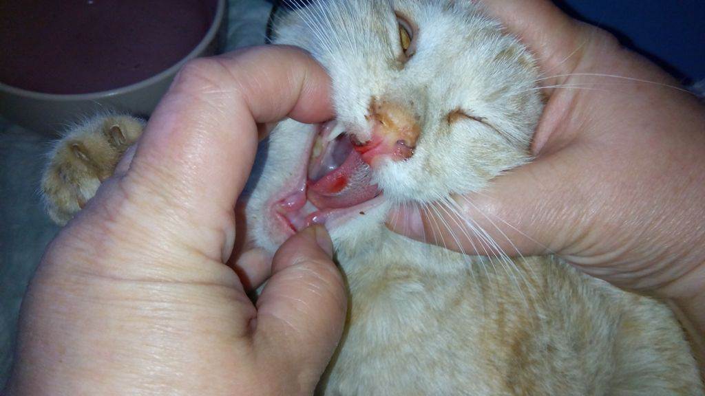 - Язвочки на слизистых оболочках полости рта и носа. Изо рта животного появляется легкий гнилостный запах.