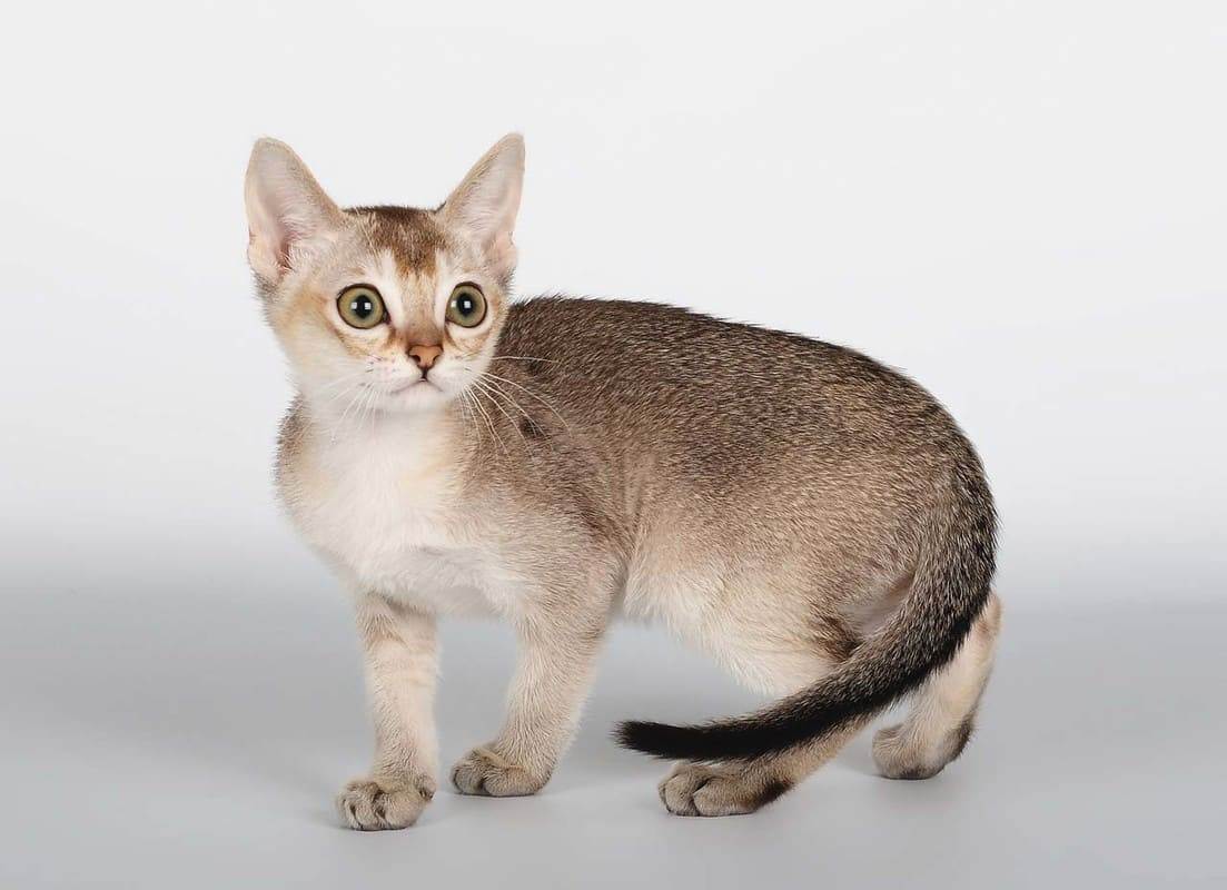 Тело сингапурца прямоугольное, удлиненное четко просматриваются большие группы мышц. Хвост, конечности за счет короткой шерсти и мускулистости выглядят утонченно и изящно.