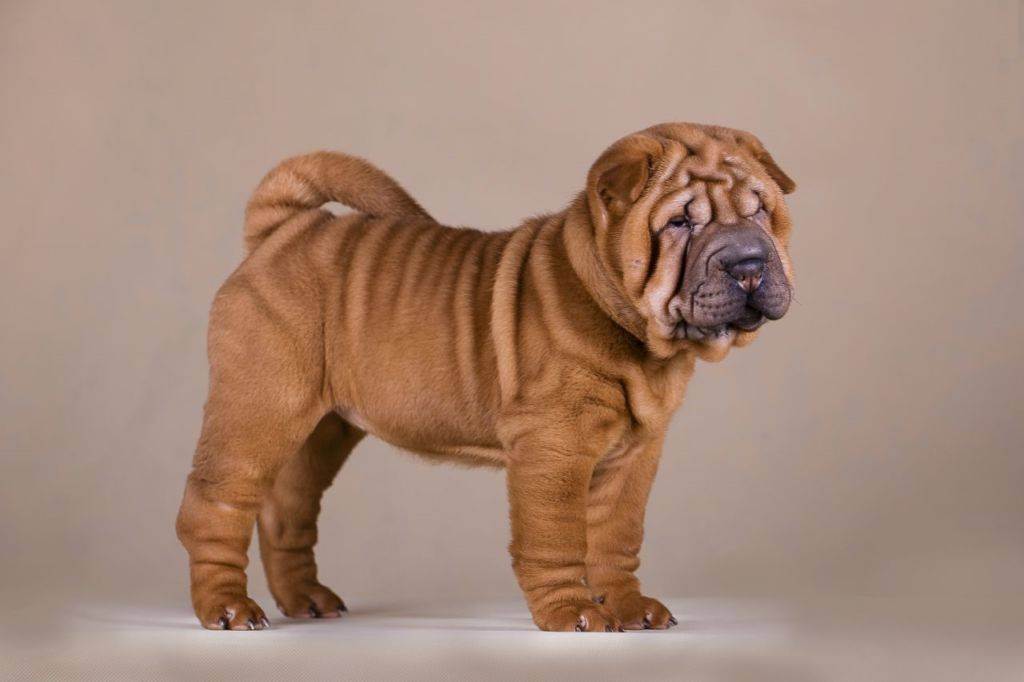 Щенки шарпея похожи на гофрированных бегемотиков, но по мере роста «морщинки» разглаживаются, у взрослых собак складок на теле остается по минимуму.