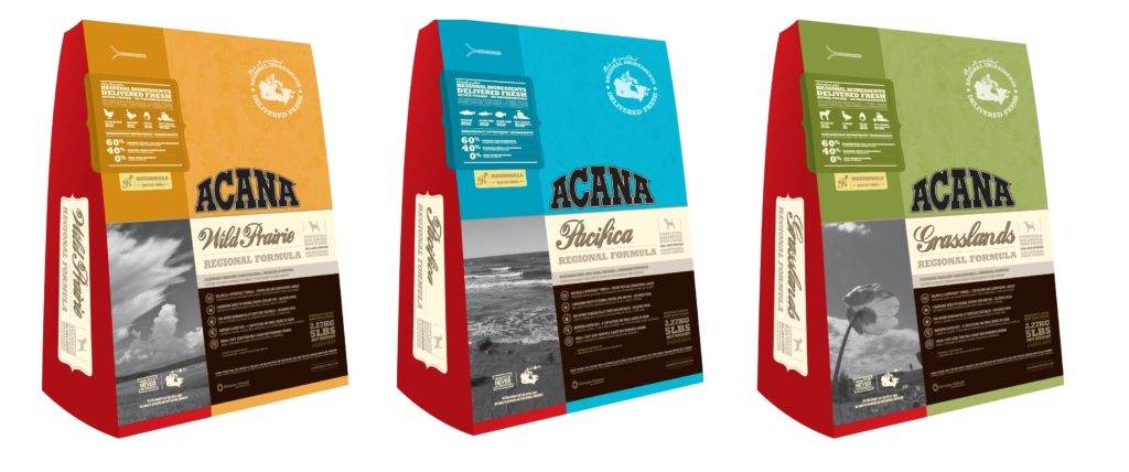 Базовый ассортимент бренда Acana состоит из трёх видов сухого корма:
