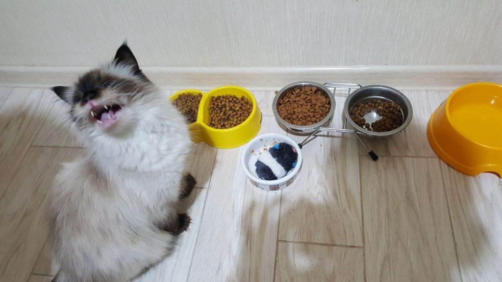 При кормлении кошки сухим кормом ей следует давать больше воды