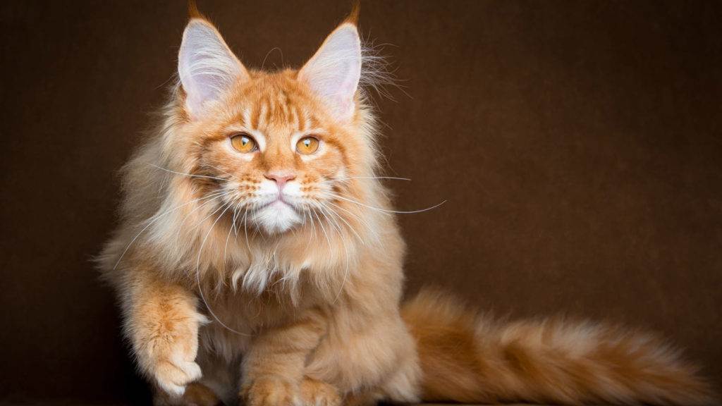 Крупный метровый кот весом до пятнадцати килограмм и милыми кисточками на больших ушах – это породистый Мейн-кун. Умные, но не разговорчивые коты этой породы не будут горланить по ночам без веской причины, они с большей охотой издают урчащие звуки. За пушистой шерстью этих крупных котов нужно постоянно ухаживать, в частности вычесывать фурминатором.