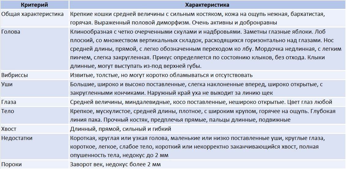 Таблица стандартов донских сфинксов.