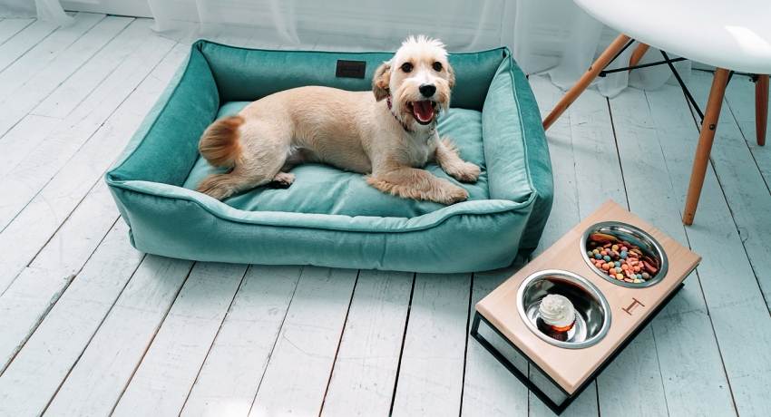 Лежаки для собак бывают пластиковыми и мягкими, с деревянным каркасом