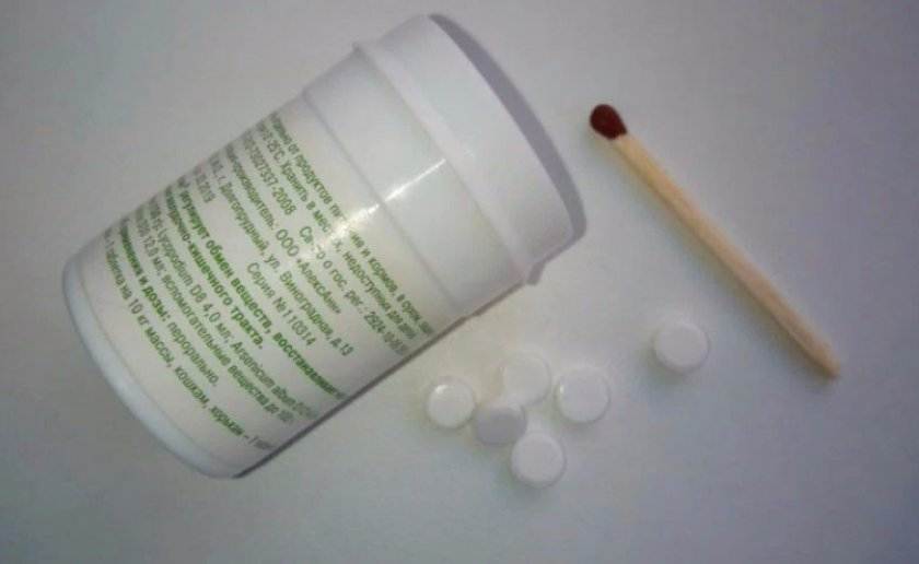 - При болезнях кишечника и желудка препарат дают животным по одной таблетке 4−6 раз в сутки.