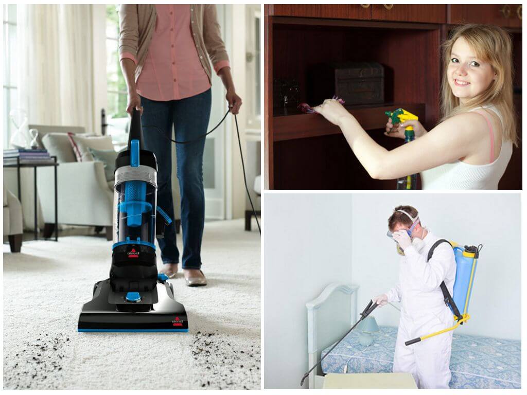 Особенно тщательно следует обработать мягкую мебель, необходимо вычистить все ковры, убрать пыль с поверхностей. Чехол от матраса, постельное белье, лежанки животных нужно постирать при высокой температуре.
