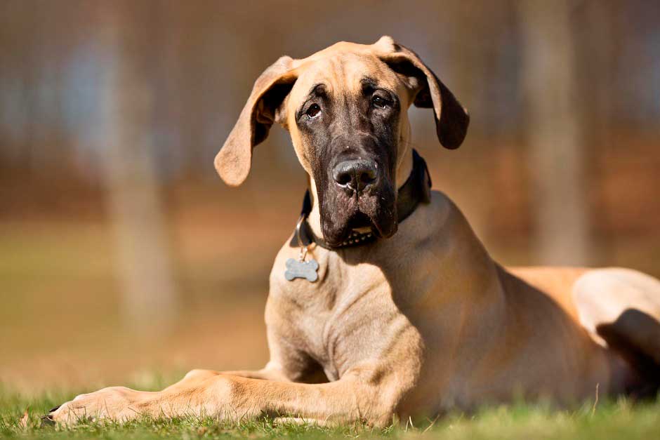 По стандарту она должна быть черной. Зубы животного белоснежные и крепкие. Его челюсть – невероятно мощная. Глазницы очень плотно прилегают к векам. Немецкий дог на фото изображен заинтересованным, добродушным и ласковым. У него довольно умный взгляд.