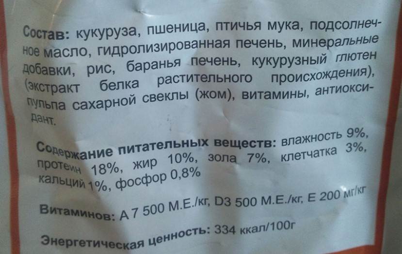- Дополнительные компоненты. На 6 месте в составе находится свекловичный жом – продукт, который остается после переработки этого овоща – ее клетчатка высоко ценится. Кроме того, в корме есть витаминно-минеральные добавки и антиоксиданты.